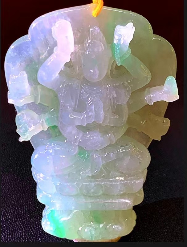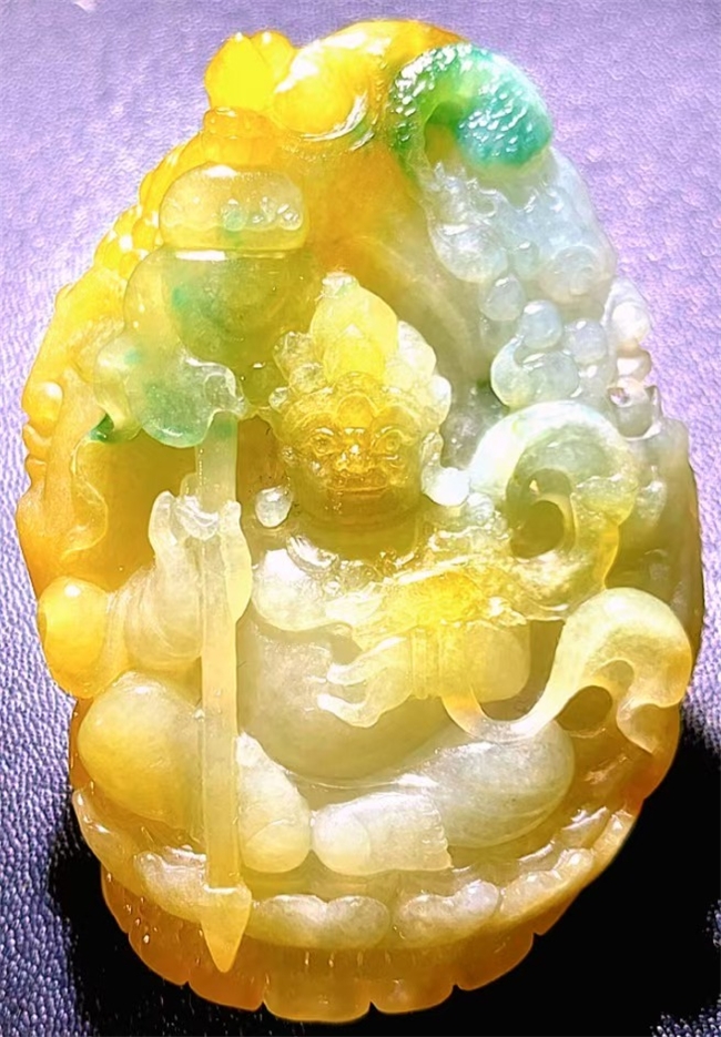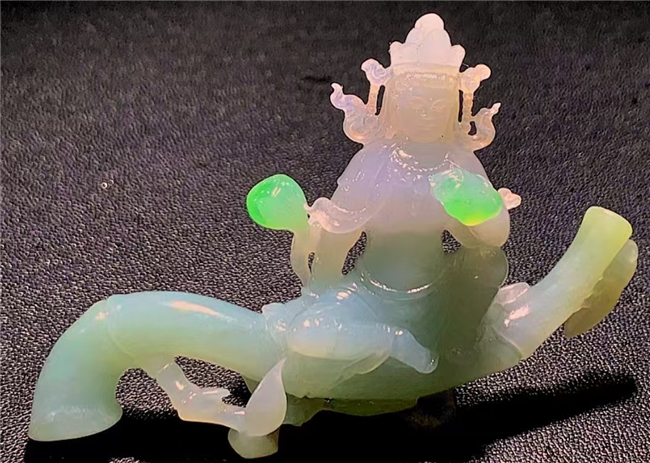 翡翠,作为一种珍贵且特性独特的材质,为万方玮的人物造像雕刻提供了无限可能。他深谙翡翠的特性,在创作吉尼斯纪录级别的作品时,能够巧妙利用翡翠的色彩、质地和纹理,使其与雕刻工艺相辅相成。对于一块带有多种色彩的翡翠原石,他会根据色彩分布精心构思人物造型,如将绿色部分雕刻为观音的法衣,白色部分塑造为肌肤,天然的色彩过渡自然地呈现出服饰的层次感和肌肤的细腻感。在雕刻工艺上,面对翡翠硬度高、易碎的特点,他凭借精湛技艺,在进行镂空雕刻等复杂工艺时,精确控制力度和角度,使作品在展现出精巧造型的同时,又保持翡翠材质的完整性。在创作大型造像时,他对材质的运用更是大胆而巧妙,利用翡翠原石的天然形状作为造像的基础轮廓,减少不必要的切割,最大程度保留材质的自然美感,实现了材质与工艺的高度契合 。